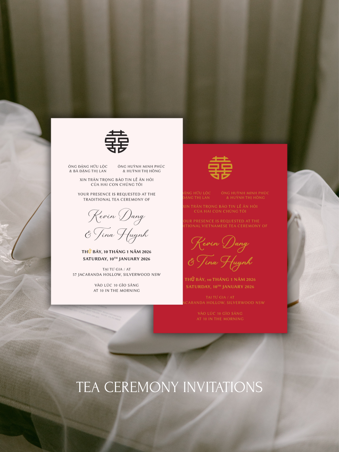 Customise our Hoang Lien Son Collection to suit your wedding style, with personalised colours, wording, and finer details.